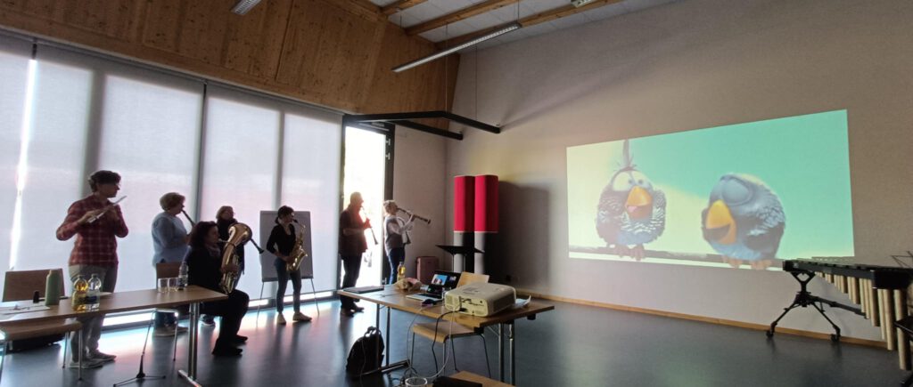Kristin Thielemann hat Orchestermusik, Trompete und Musikpädagogik studiert und ist aktuell unter anderem als Musikpädagogin und Autorin für Ausbildungsliteratur tätig. Durch ihre mitreißende Art brachte sie uns Themen wie Atem- und Entspannungstechniken, Hausaufgaben-Tipps und moderne Unterrichtsmethoden näher. Wir lernten was Gamification ist und nützt, probierten uns bei Rhythmikspielen aus und vertonten gemeinsam einen Zeichentrickfilm.